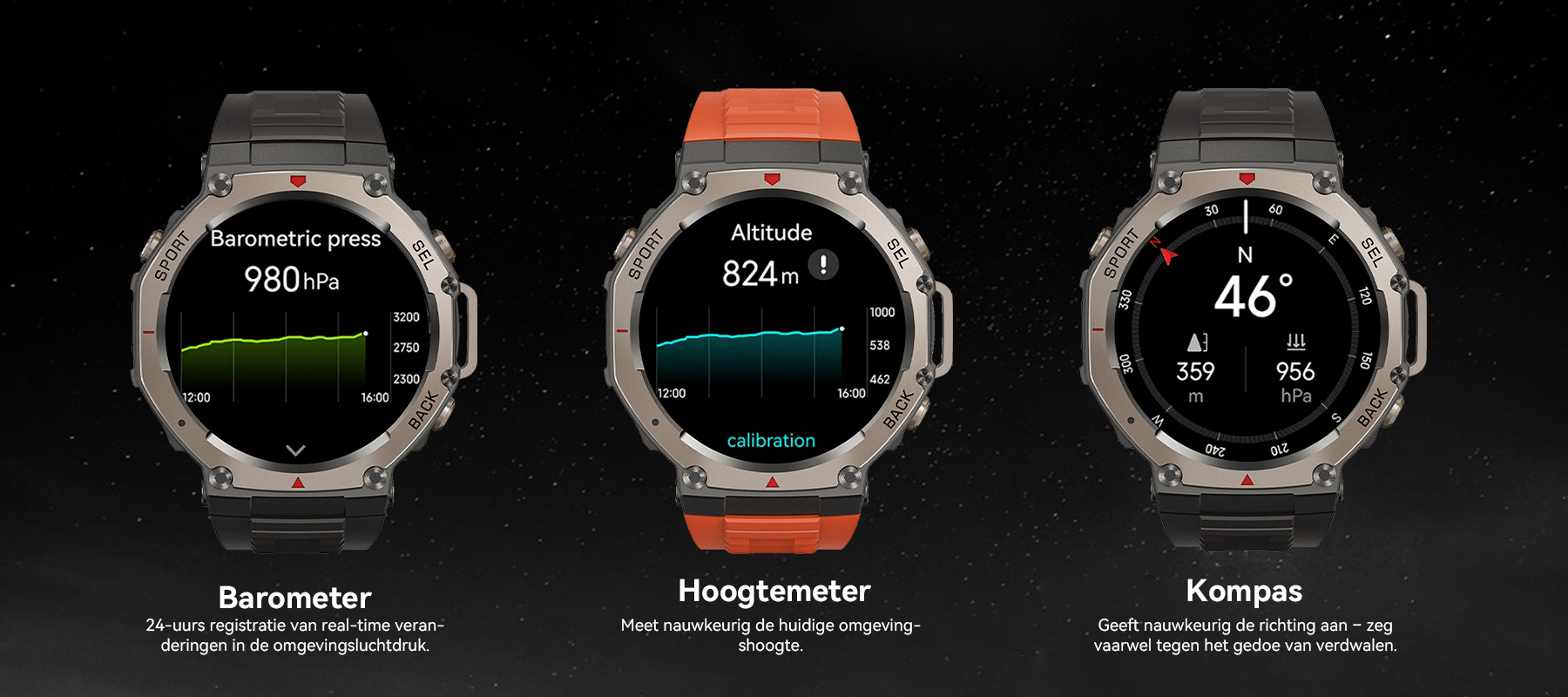 - 24/7 Health Guardian- Realtime monitoring van hartslag, bloedzuurstof en stress voor veiligheidswaarschuwingen.